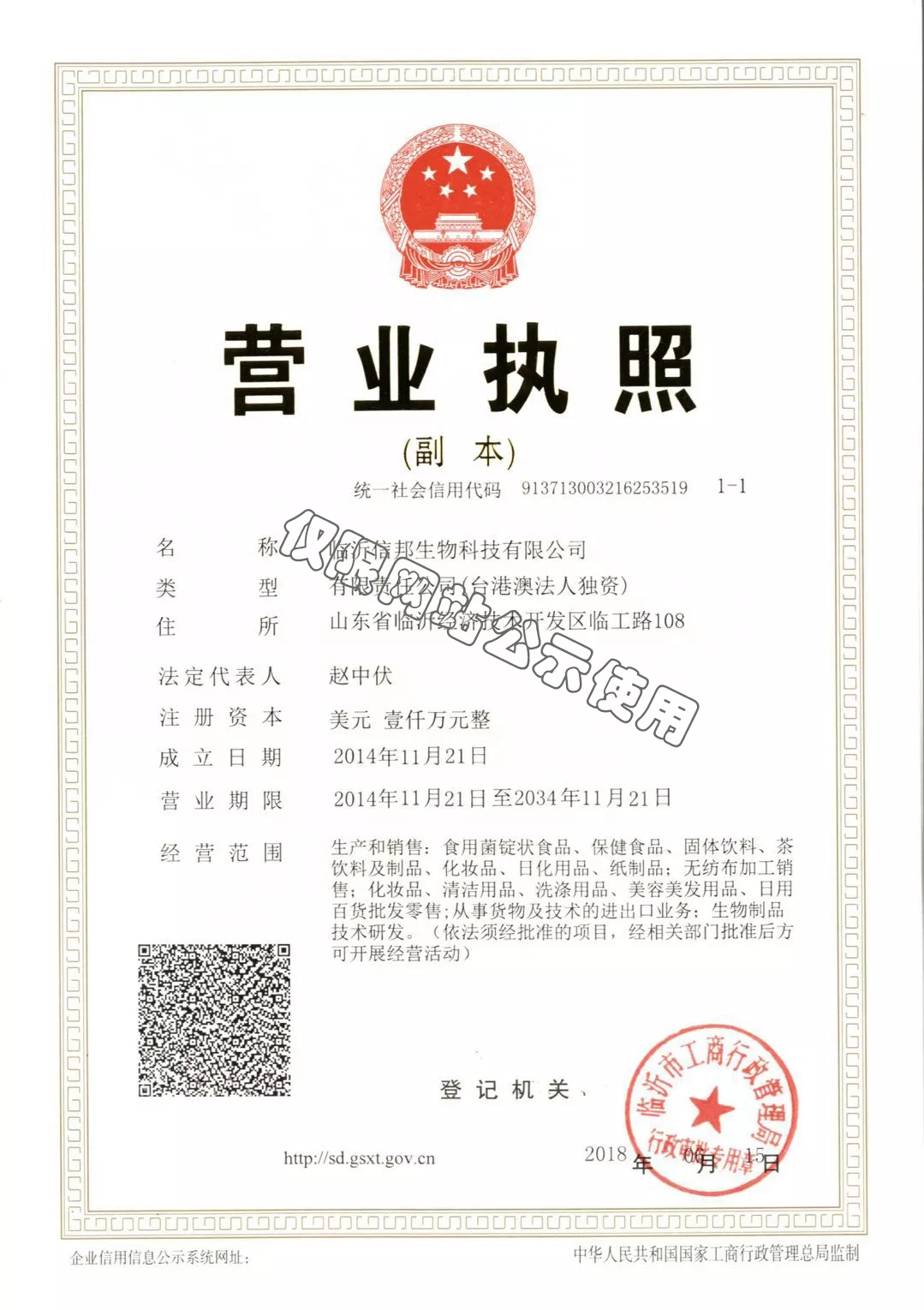 查看詳情 +信邦生物科技注冊(cè)成立